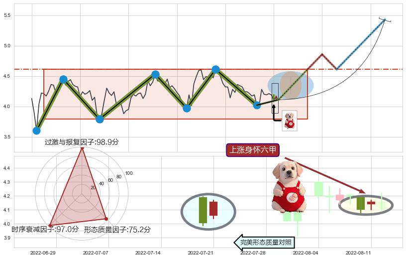 ➢ 【仅预测突破】最后价格:4.11与预测突破价格:4.61→【空间中等】后续最小【整理】第一目标价格→(2022-10-13: 5.43 )