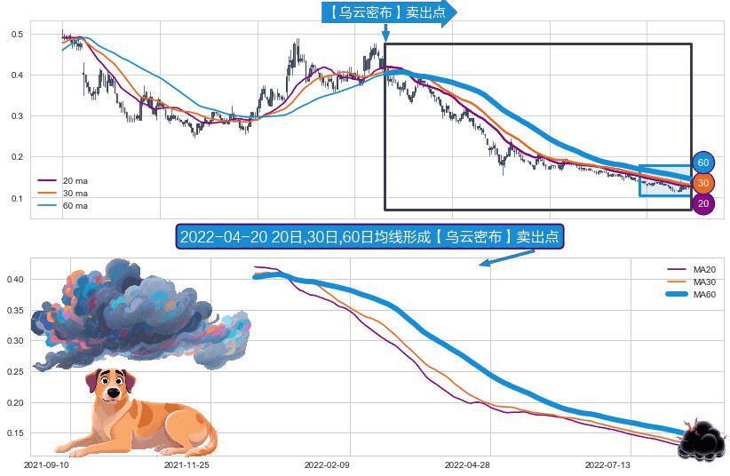 形态多维评估: ⚀ 2021-12-17日-2022-08-12日显现 20日-30日-60日均线 【乌云密布】卖出点 看空信号,后市看跌,卖出