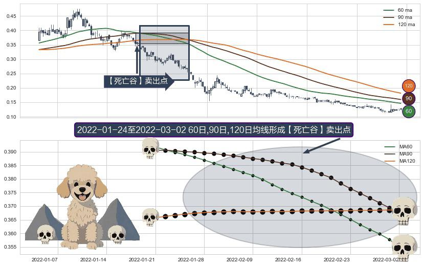 形态多维评估: ⚀ 2022-01-25-日至2022-03-02-日显现 60日-90日-120日均线 【死亡谷】卖出点 看空信号,后市看跌,卖出