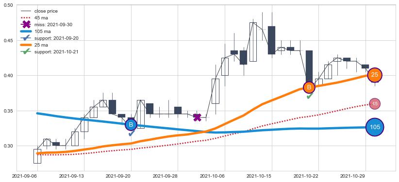 上涨趋势2021-09-06-2021-11-01,均线105, 25确认关键支撑2处