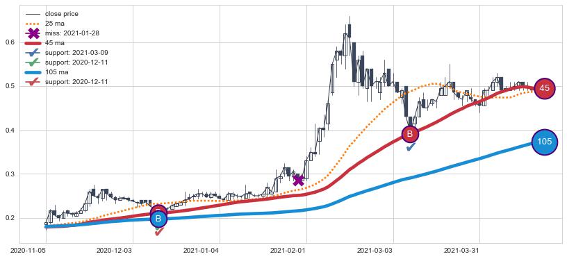 上涨趋势2020-11-05-2021-04-22,均线105, 45确认关键支撑2处