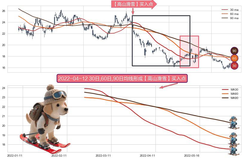 形态多维评估: ⚀ 2022-02-23日-2022-06-06日显现 30日-60日-90日均线 【高山滑雪】买入点 看多信号,后市看涨,买入