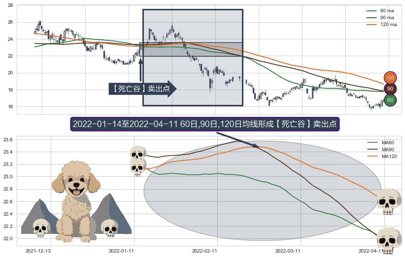 形态多维评估: ⚀ 2022-01-17-日至2022-04-11-日显现 60日-90日-120日均线 【死亡谷】卖出点 看空信号,后市看跌,卖出