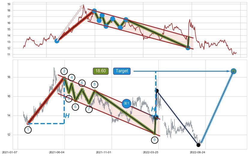 ➢ 【买1】: 激进型 买点 →(2022-03-17: 13.80 )形成突破降⚑旗形【整理】形态