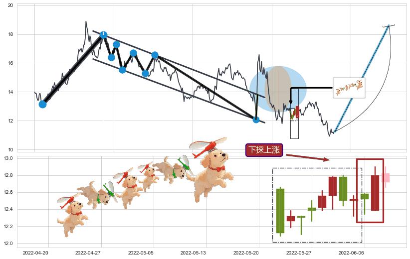 2022-03-15: 时域附近第一阻力位12.76持续的对下跌趋势进行阻拦,有效地放缓了下跌的速度。