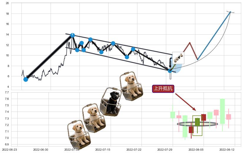 ♘ 阻力价格位12.74,可信任强度95.50%,距离最后交易2022-08-12形成的收盘价格7.38相差 +72.66%