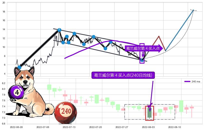 | 3 🅚:上涨孕十字星 ➕ 🎢:葛兰威尔第④买入点买入点信号形成后,猜想后续走势持续反弹上升(均值回复) ☞ 看多信号 ⇥ 【均线】交织【🅚线】⇥ 综合量化分数: 54 | > |