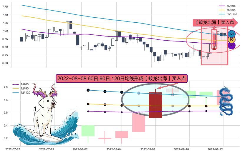 ⚀ 2022-08-08日显现 60日-90日-120日均线 【蛟龙出海】买入点 看多信号,后市看涨,买入