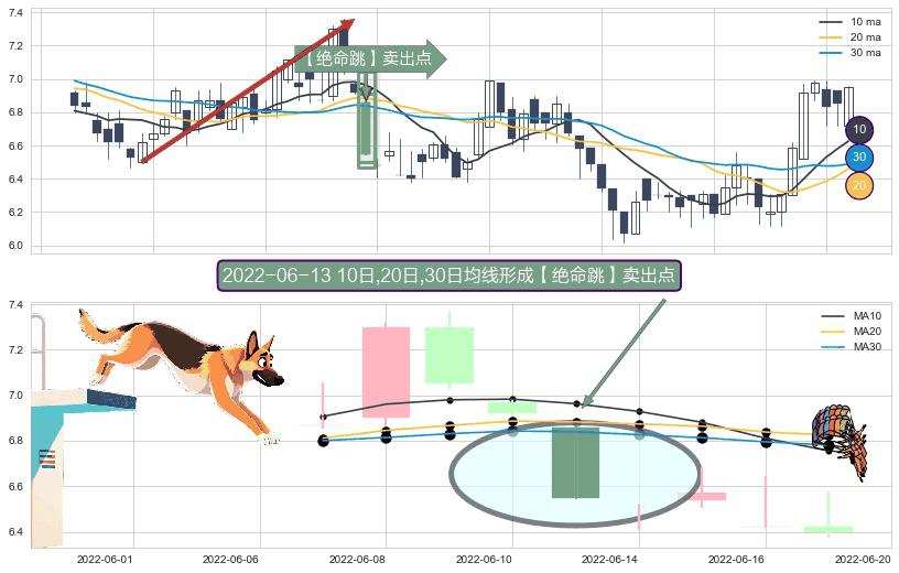 ⚀ 2022-06-13日显现 10日-20日-30日均线 【绝命跳】卖出点 看空信号,后市看跌,卖出