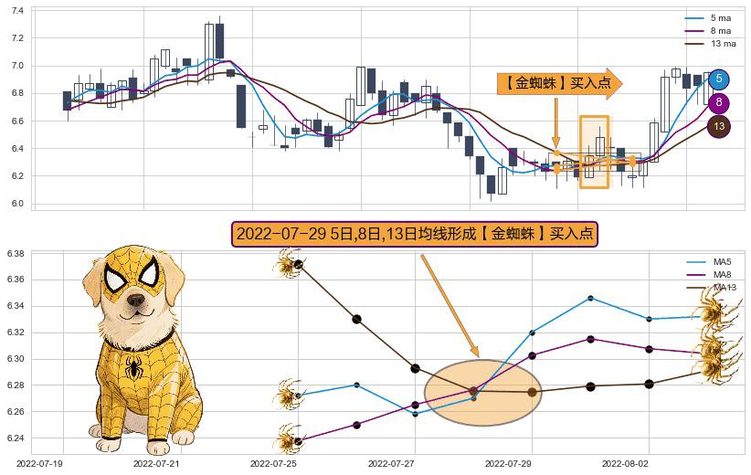 ⚀ 2022-07-29日显现 5日-8日-13日均线 【金蜘蛛】买入点 看多信号,后市看涨,买入