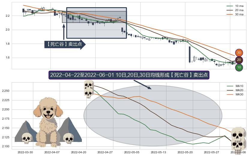 形态多维评估: ⚀ 2022-04-25-日至2022-06-01-日显现 10日-20日-30日均线 【死亡谷】卖出点 看空信号,后市看跌,卖出