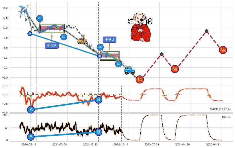 ➣ 【未完成】缠论 起点:2020-01-02, 完成第1中枢A,完成第2中枢B,到达2022-08-12