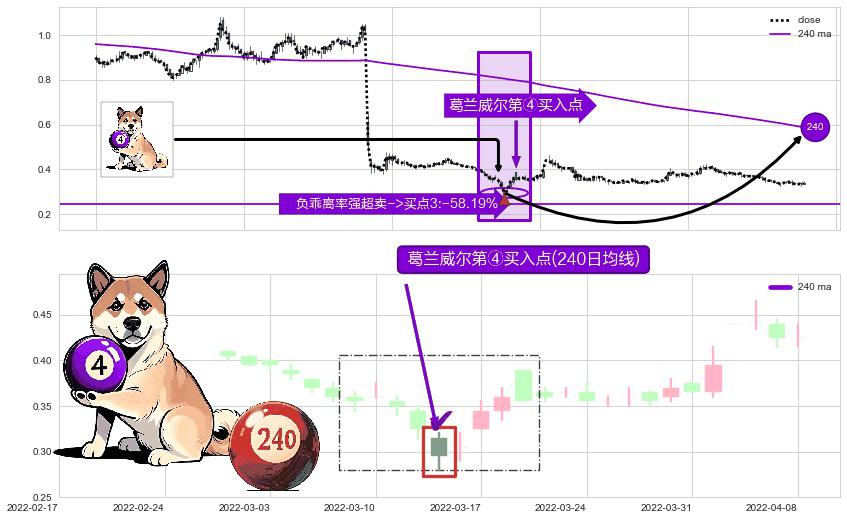 ⚀ 2022-03-15-日显现 葛兰威尔均线 240日均线 第④买入点 下降趋势均值回复的短线反弹信号,后市看涨,买进信号