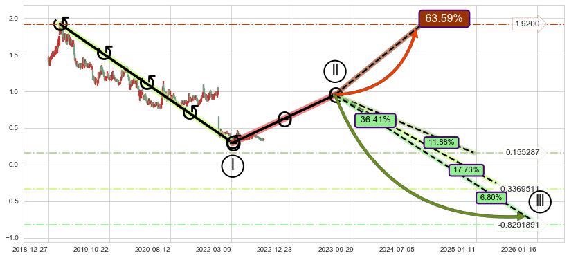 ➣ 大趋势循环浪继续向下概率36.41%