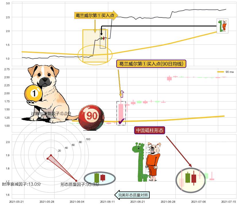 | 2 🅚:上涨两颗星 | 上涨三颗星 ➕ 🎢:葛兰威尔第①买入点买入点信号形成后,猜想后续下跌趋势反转上涨趋势(均值回复) ☞ 看多信号 ⇥ 【均线】交织【🅚线】⇥ 综合量化分数: 53 | > |