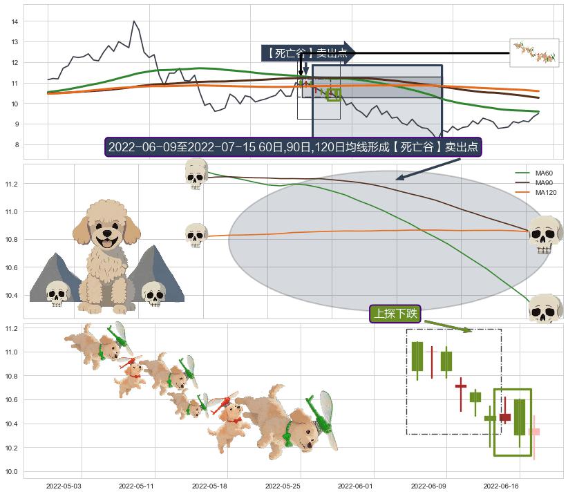 | 6 🅚:下跌两颗星 | 下跌三颗星 ➕ 🎢:【死亡谷】卖出点均线组合卖出点信号形成后,猜想后续破位下跌,沿着向下的尖头三角下跌 ☞ 看空信号 ⇥ 【均线】交织【🅚线】⇥ 综合量化分数: 42 | > |