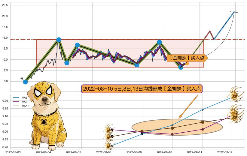 ♘ 阻力价格位13.55,可信任强度96.63%,距离最后交易2022-08-12形成的收盘价格9.50相差 +42.65%