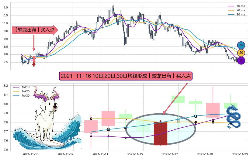⚀ 2021-11-16日显现 10日-20日-30日均线 【蛟龙出海】买入点 看多信号,后市看涨,买入