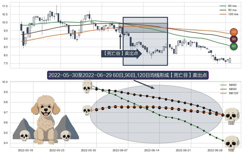 ⚀ 2022-05-31-日至2022-06-29-日显现 60日-90日-120日均线 【死亡谷】卖出点 看空信号,后市看跌,卖出