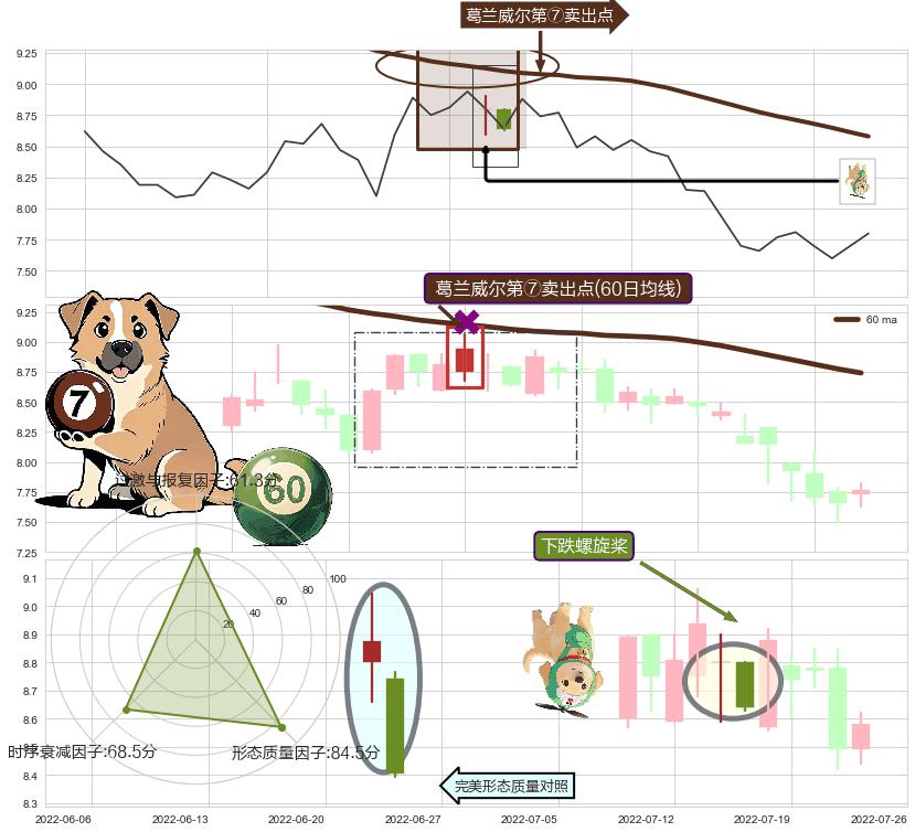 | 3 🅚:下跌抵抗 ➕ 🎢:葛兰威尔第⑦卖出点卖出点信号形成后,猜想后续反弹结束,持续回落下跌(趋势跟踪) ☞ 看空信号 ⇥ 【均线】交织【🅚线】⇥ 综合量化分数: 36 | > |