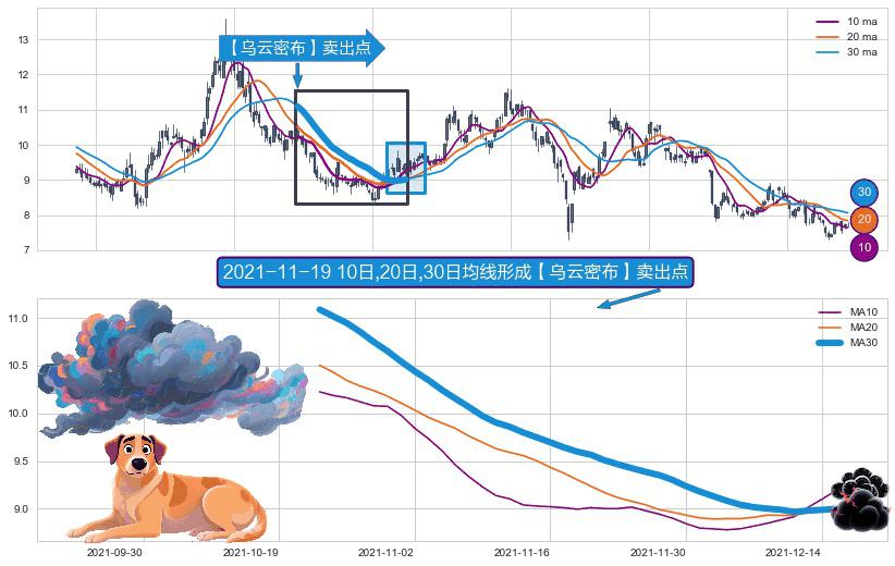 形态多维评估: ⚀ 2021-10-22日-2021-12-16日显现 10日-20日-30日均线 【乌云密布】卖出点 看空信号,后市看跌,卖出