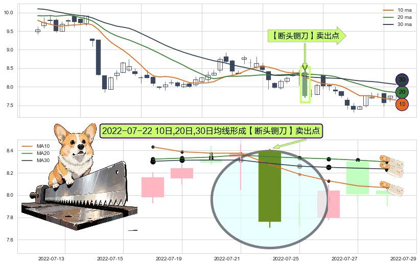 形态多维评估: ⚀ 2022-07-22日显现 10日-20日-30日均线 【断头铡刀】卖出点 看空信号,后市看跌,卖出