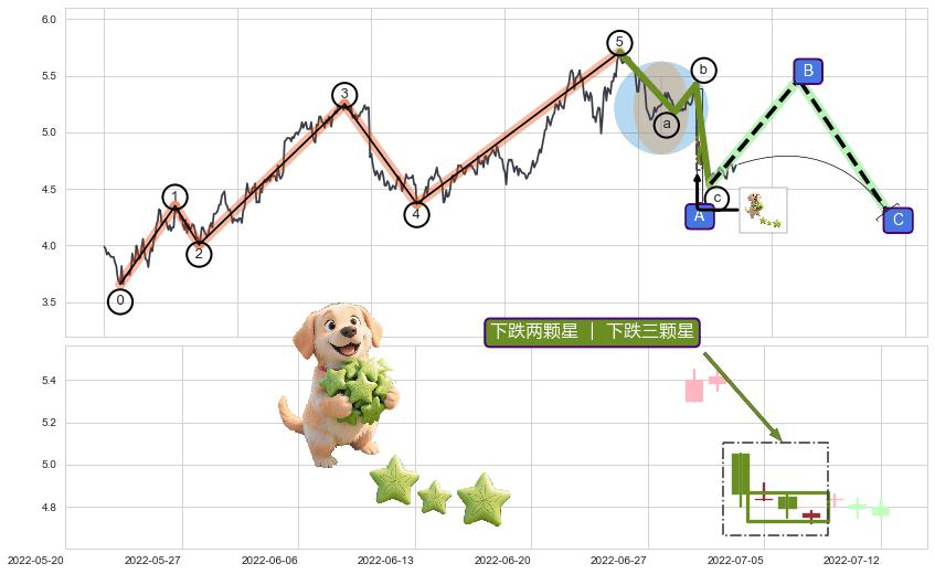 ➢ 高点影线(2022-05-03: 5.54 )→回踩→第二根k线高点(2022-04-25: 5.51 )