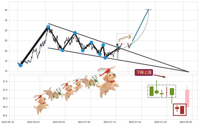 | 8 🅚:阳包阴(穿头破脚) ➕ 📐:降楔型猜想突破点临近,临近关键阻力位,预期拉升突破上涨 ☞ 看多信号 ⇥ 【🅚线】交织【图形】⇥ 综合量化分数: 53 | > |
