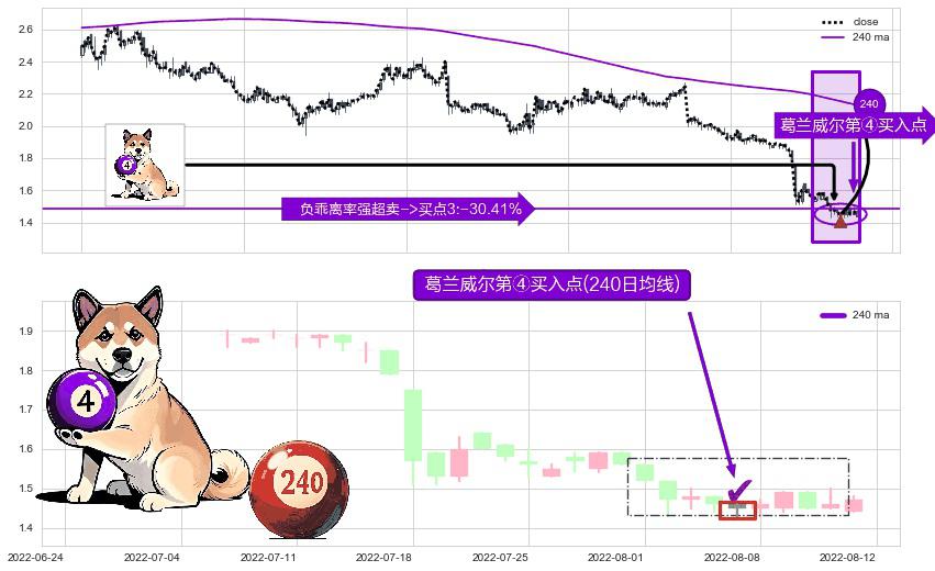 ⚀ 2022-08-05-日显现 葛兰威尔均线 240日均线 第④买入点 下降趋势均值回复的短线反弹信号,后市看涨,买进信号