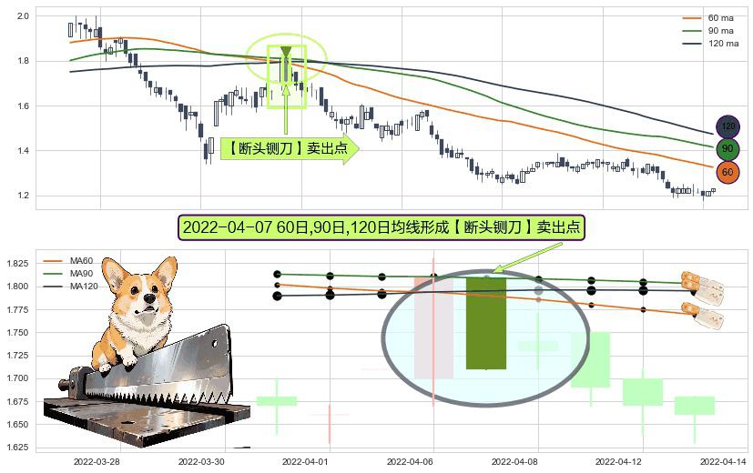 形态多维评估: ⚀ 2022-04-07日显现 60日-90日-120日均线 【断头铡刀】卖出点 看空信号,后市看跌,卖出