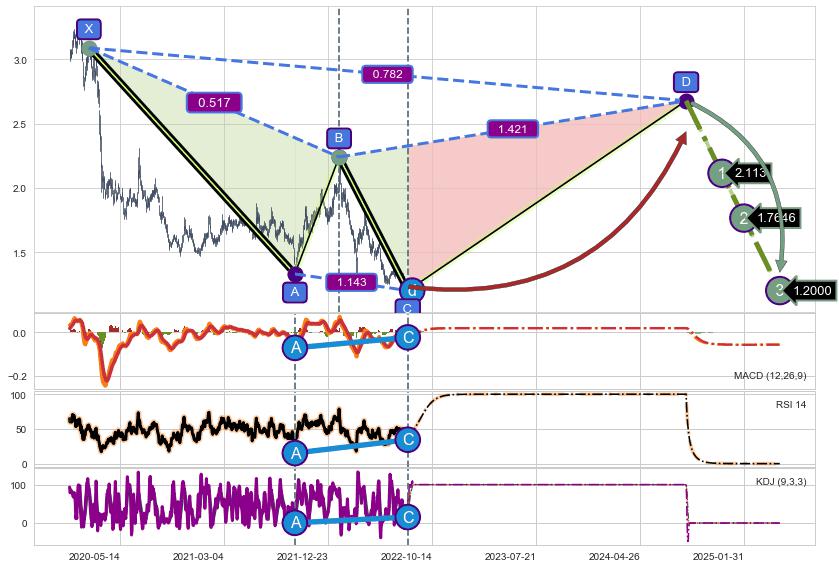 ➣ D点拟合预测价格2.678,距离最后交易收盘价格1.2300相差 +117.72%