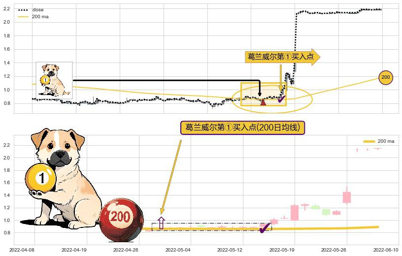 形态多维评估: ⚀ 2022-04-28-日显现 葛兰威尔均线 200日均线 第买①入点 走势反转见底信号,后市看涨,买进信号