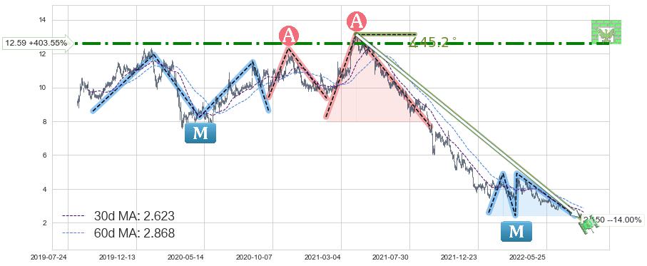 ♘ 阻力价格位12.59,可信任强度77.75%,距离最后交易2022-08-12形成的收盘价格2.500相差 +403.55%
