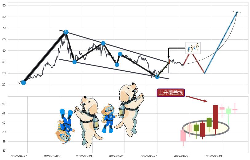 | 7 🅚:上涨螺旋桨形态 ➕ 📐:降旗形向上突破击穿阻力位, 猜想持续拉升上涨,被突破的阻力位已变为支撑位 ☞ 看多信号 ⇥ 【🅚线】交织【图形】⇥ 综合量化分数: 58 | > |