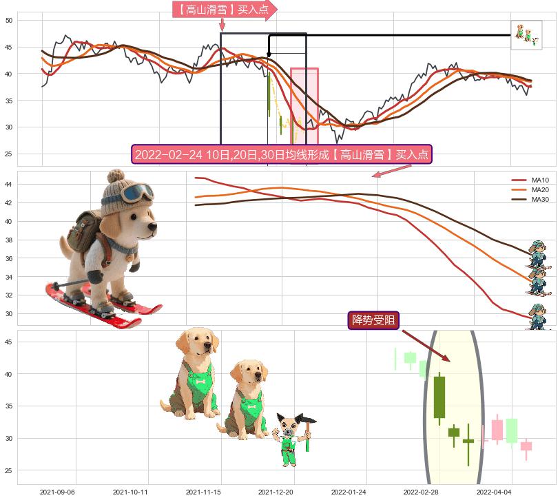 | 2 🅚:早晨之星(黎明之星) ➕ 🎢:【高山滑雪】买入点均线组合买入点信号形成后,猜想后续下行结束,持续反弹上涨(均值回复) ☞ 看多信号 ⇥ 【均线】交织【🅚线】⇥ 综合量化分数: 52 | > |