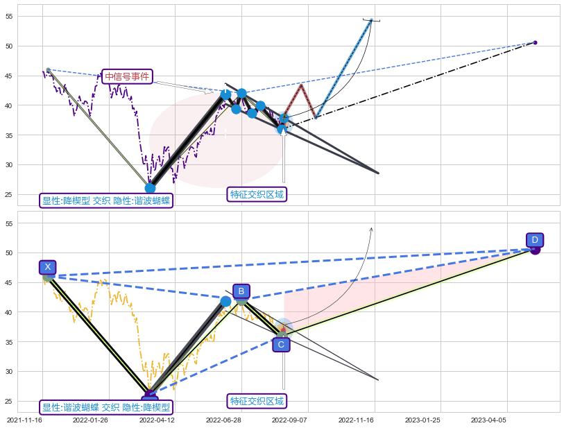 | 2 📡:谐波蝴蝶c拐点下跌阻力 ➕ 📐:升楔型支撑破位转换阻力下跌 ☞ 看空信号 ⇥ 【图形】交织【图形】⇥ 综合量化分数: 26 | > |