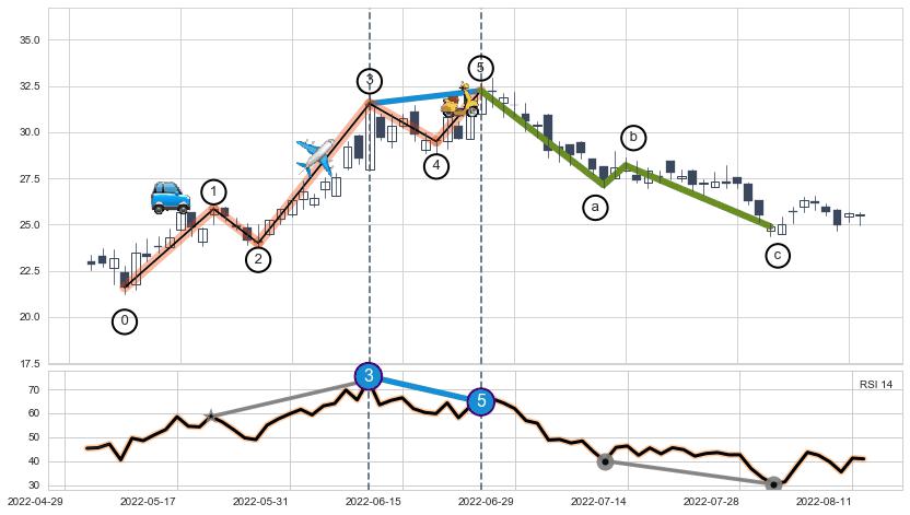 ➣ a,c调整浪MACD, RSI, KDJ走势都【未出现】背离,abc走势延续, 5浪反转概率增强