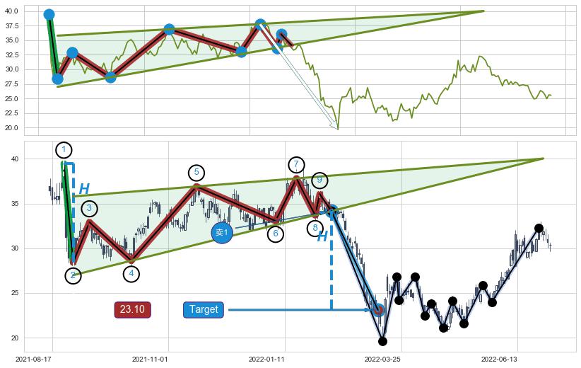 ➣ 最小中继整理涨幅→𝐇: 8.80 (𝐇旗杆的长度:旗杆起点→顶点)