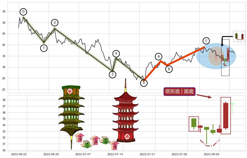 ♘ 阻力价格位43.33,可信任强度57.65%,距离最后交易2022-08-12形成的收盘价格36.05相差 +20.18%