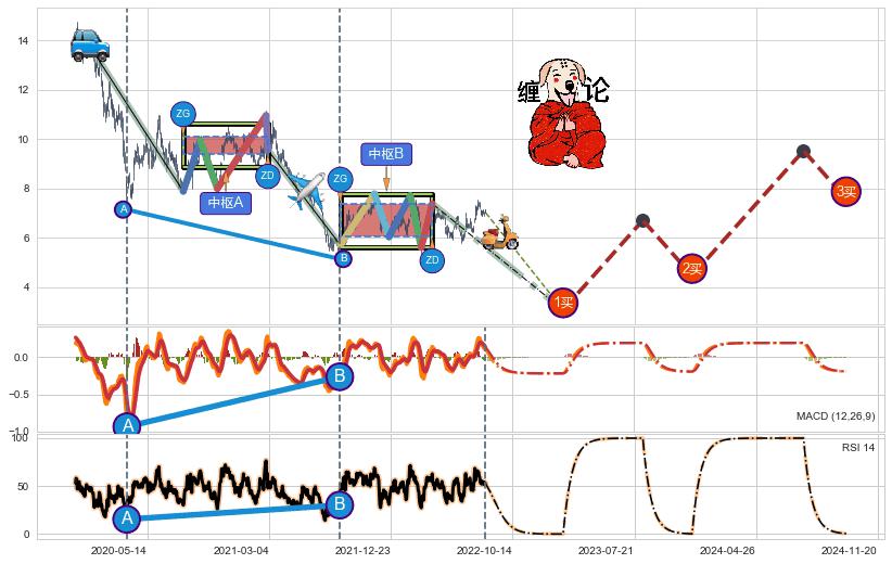 ➣ 【未完成】缠论 起点:2019-12-13, 完成第1中枢A,完成第2中枢B,到达2022-08-12
