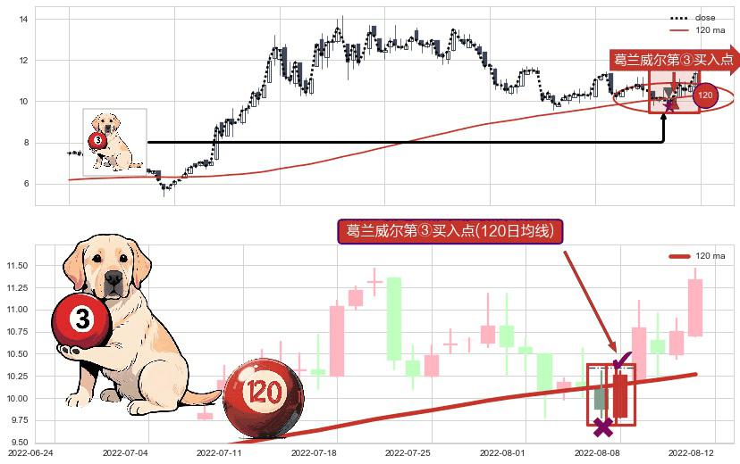 ⚀ 2022-08-08-日显现 葛兰威尔均线 120日均线 第③买入点 上升趋势的中继信号,后市看涨,买进信号