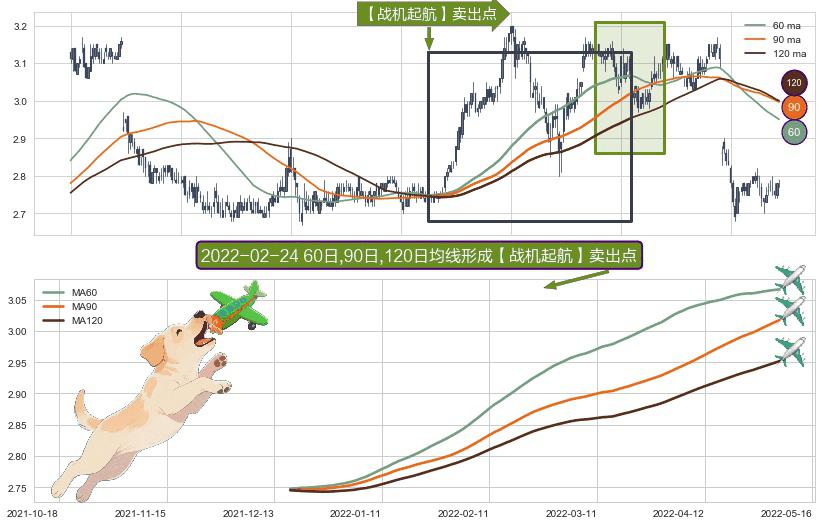 ⚀ 2021-12-16日-2022-05-05日显现 60日-90日-120日均线 【战机起航】卖出点 看空信号,后市看跌,卖出