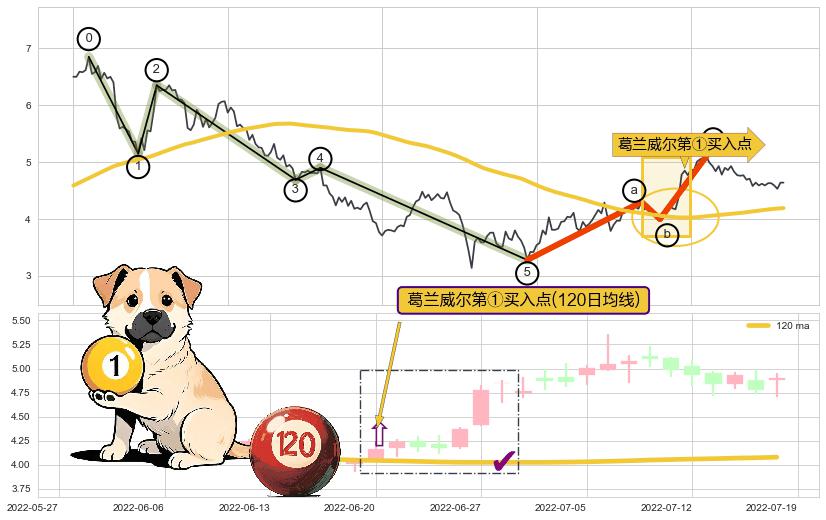 🍖 长线趋势跟踪组合短线均值回复[强支撑信号]2022-03-15-2022-07-22上升趋势依然成立(上涨趋势跟踪依然可行),短线价格略微下行回调(均值回复猜想),即将接近趋势提供的未破位的支撑价格:4.69。