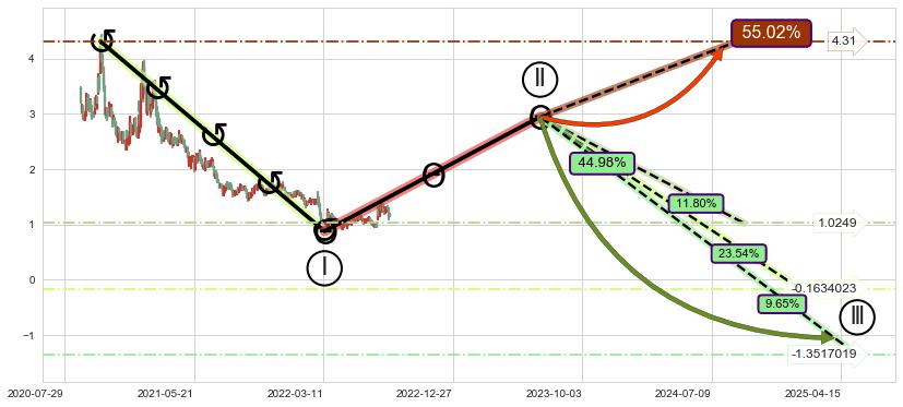 ➣ D点拟合预测价格1.4970,距离最后交易收盘价格1.1700相差 +27.95%