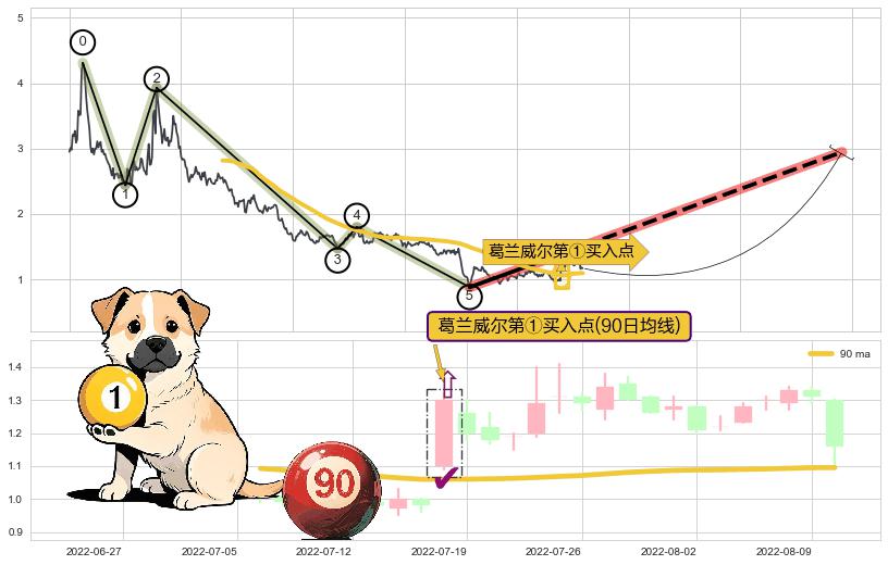 | 2 🅚:葛兰威尔第②买入点 ➕ 🌊:波浪理论猜想下跌浪5已形成,猜想后续形成abc反弹上涨(均值回复) ☞ 看多信号 ⇥ 【均线】交织【图形】⇥ 综合量化分数: 51 | > |