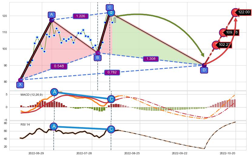 ➣ 已完成【蝙蝠】形态起点X: 2022-04-08, 终点D: 2022-08-09, 共82交易日