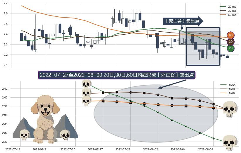 形态多维评估: ⚀ 2022-07-28-日至2022-08-09-日显现 20日-30日-60日均线 【死亡谷】卖出点 看空信号,后市看跌,卖出