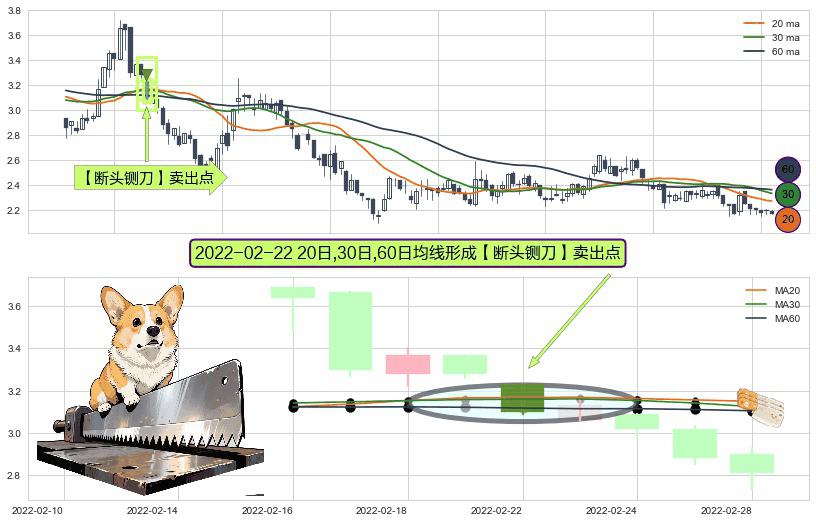 形态多维评估: ⚀ 2022-02-22日显现 20日-30日-60日均线 【断头铡刀】卖出点 看空信号,后市看跌,卖出