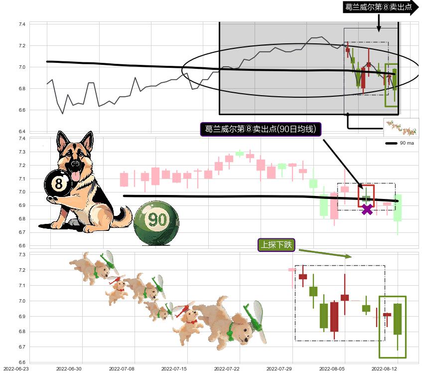 ➣ AI预测: 假定反转启动后, 第❸目标位置(2023-08-25, 7.43)