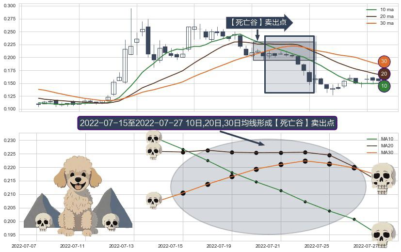 形态多维评估: ⚀ 2022-07-18-日至2022-07-27-日显现 10日-20日-30日均线 【死亡谷】卖出点 看空信号,后市看跌,卖出